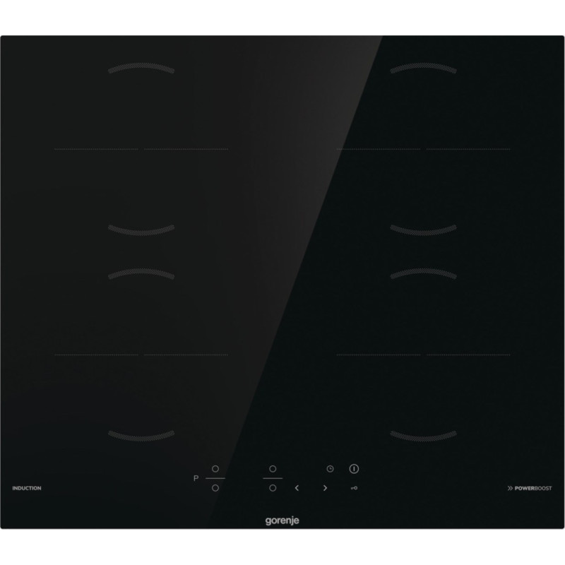 Gorenje GI6401BSCE yra juodas įmontuojamas indukcinis kaitlentė su keturiomis elektrinėmis virimo zonomis, kurių skersmuo yra 180 mm. Ji turi lietimui jautrų valdymo skydelį, integruotą ekraną ir saugos funkcijas, tokias kaip perkaitimo apsauga ir vaikų užraktas.