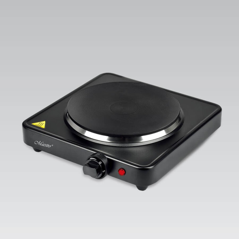 Maestro MR-772-1 yra juodas elektrinis viryklė su viena uždara virimo zona. Jame yra ketaus viršus, 185 mm skersmens virimo zona ir 1500 W galia.