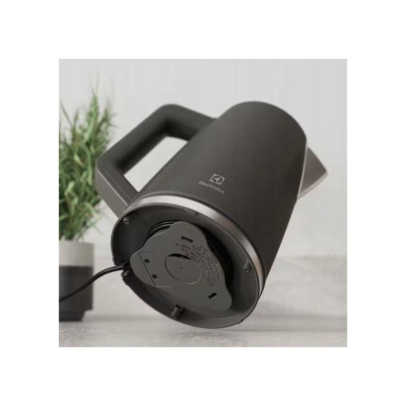The ELECTROLUX E5K1-6AN kettle has a 1.7 L capacity and is equipped with a water level indicator, overheating protection and filtration. It operates at 2400 W with a 360° rotating base and has an automatic shut-off function for safety.