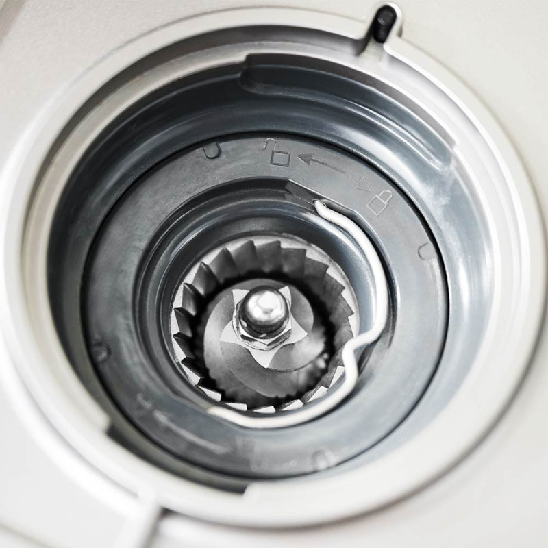 250 g pupelių talpa, 2,8 l nuimamas vandens bakas, šildoma šildymo lėkštė ir 360° plakimo antgalis.