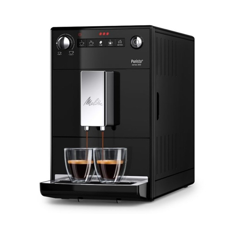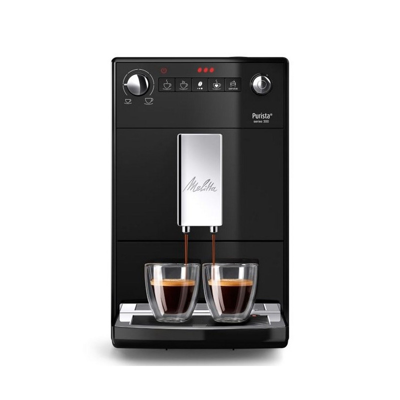 The Melitta Purista F23/0-102 is a fully automatic coffee machine for countertop use, featuring a compact design and automatic maintenance functions.
