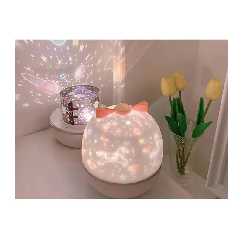 Lightings Kiddyz WH-16E Sapnų projekcinė naktinė lempa (12x12xm) su 6 raštų plėvelėmis, įkraunama per USB-C, balta