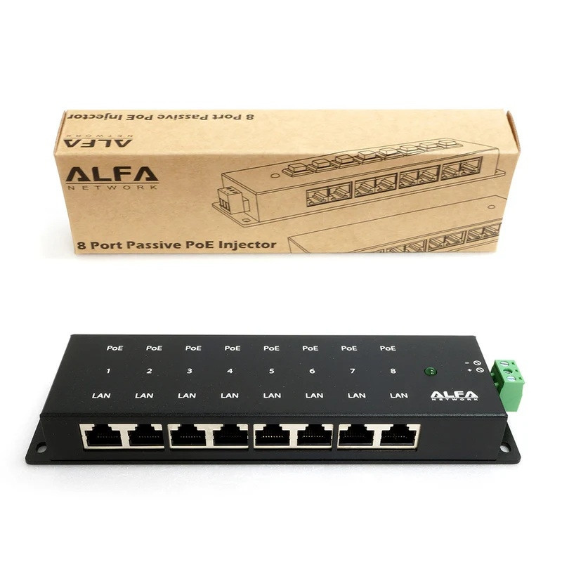 ALFA NETWORK 12-48VDC Passive PoE injector for 8 Gigabit devices