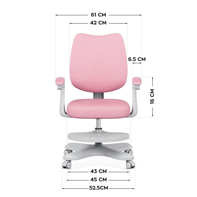 Junior 4.6 Pink sukamoji kėdė pasižymi minkštu putų sėdyniu su ergonomišku dizainu ir reguliuojamu aukščiu. Ji turi porankius, pakojį ir ratukus, užtikrinančius lengvą judėjimą.