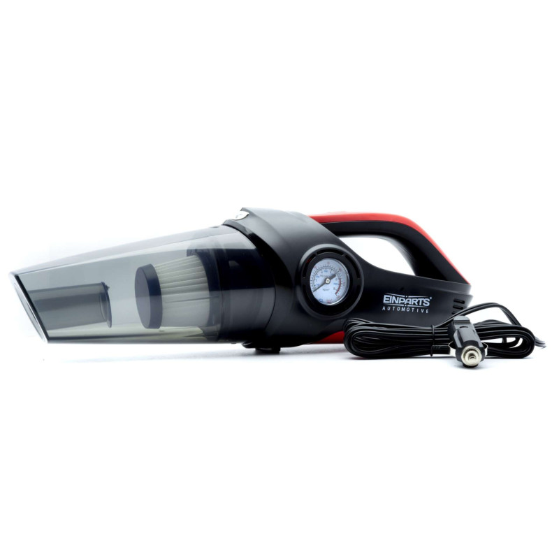 Šis lengvai naudojamas automobilio dulkių siurblys su trimis antgaliais lengvai pašalins tiek mažas, tiek dideles šiukšles iš jūsų automobilio apmušalų. Maitinamas 12 V cigarečių degiklio lizdo, jums nereikia jokių papildomų laidų ar ilgintuvų. Daugiau nei 4 metrų ilgio lankstus laidas suteikia didelį siurbimo lankstumą ir prieigą prie kiekvieno jūsų automobilio kampelio. Komplekte yra ilgintuvas su keičiamu antgaliu, kad pasiektumėte sunkiai pasiekiamas vietas. Lengvas dizainas leidžia ilgiau laikyti dulkių siurblį, todėl jūsų automobilis lieka švarus ir galite mėgautis patogesniu važiavimu. Papildomas šio rankinio dulkių siurblio privalumas neabejotinai yra priekyje esanti LED lemputė, kuri pagerina jo veikimą sutemus. Jis turi daugkartinio naudojimo HEPA filtrą, kuris yra labai patogus sprendimas savininkams. 2 viename? Taip, tai ne tik dulkių siurblys, bet ir kompresorius – puikus sprendimas jūsų bagažinei. Visada galite turėti po ranka dulkių siurblį, o avariniu atveju – kompresorių su 76 cm poliuretano žarna. Puikus sprendimas! Rinkinyje yra 3 keičiami antgaliai, kurie, tinkamai panaudoti, lengvai pašalins sunkiausiai įveikiamus nešvarumus, tokius kaip: - smėlis - trupiniai - plaukai - mažas stiklinėlis - 76 cm ilgio poliuretano kompresoriaus žarna - 2 antgaliai čiužiniams pripūsti ir kt. Moderni dviguba filtravimo sistema neleidžia net mažiausioms nešvarumų ir dulkių dalelėms patekti į įrenginio instaliaciją. Išvalius filtrą, jį galima nuplauti vandeniu ir išdžiovinti. Techniniai duomenys: