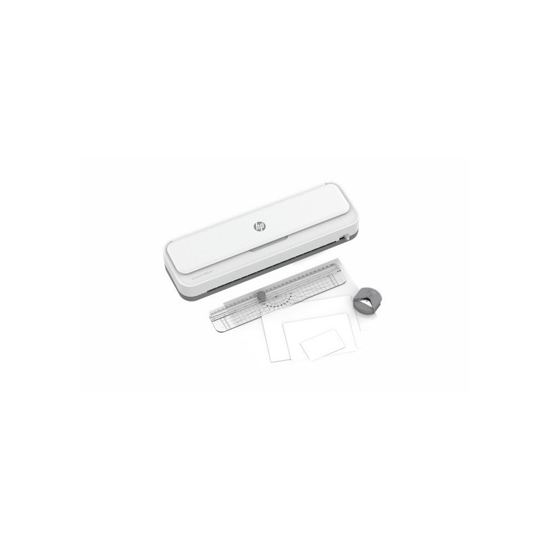 HP ONELAM 400 A3 laminavimo aparatas, karštas/šaltas, integruota žoliapjovė, kampinis apvalintuvas, greitis 40 cm/min + 15 maišelių: 3xA4, 4xA5, 4xA6, 4xB-CARD, balta