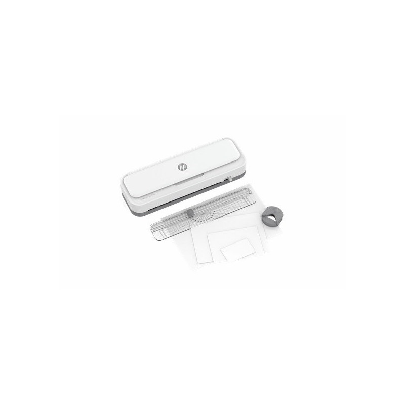 HP ONELAM 400 A4 laminavimo aparatas, karštas/šaltas, integruota žoliapjovė, kampinis apvalintuvas, greitis 40 cm/min + 15 maišelių: 3xA4, 4xA5, 4xA6, 4xB-CARD, balta