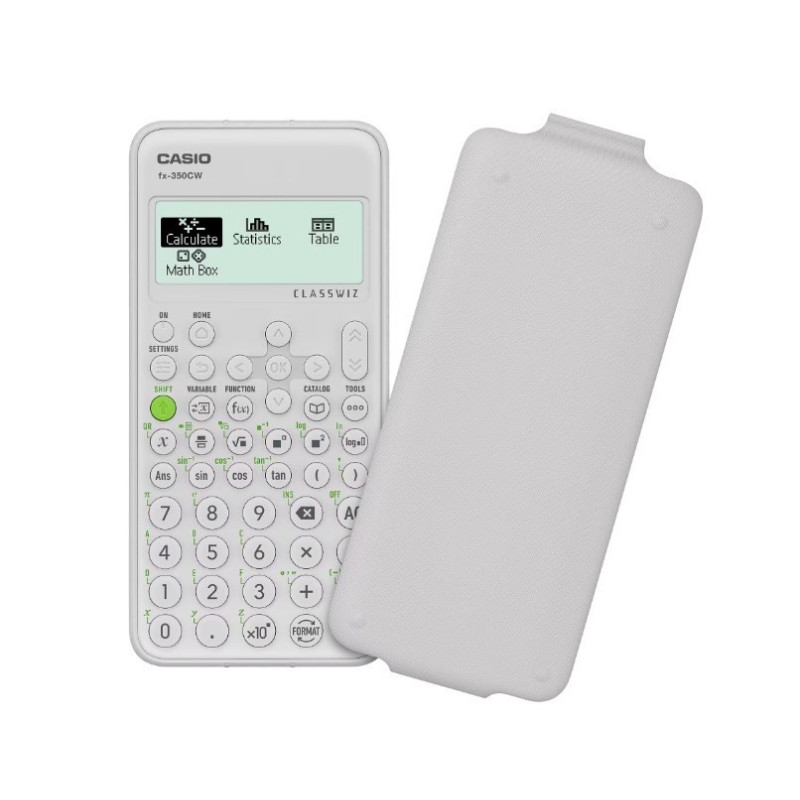 CASIO FX-350CW yra kišeninis mokslinis kalkuliatorius su pilku plastiko korpusu ir mygtukų valdymu. Jis turi 12 skaitmenų ekraną, veikia su viena AAA baterija ir gali konvertuoti kampus tarp laipsnių, radianų ir gradių.