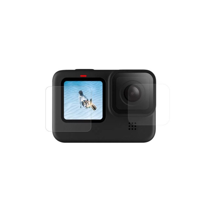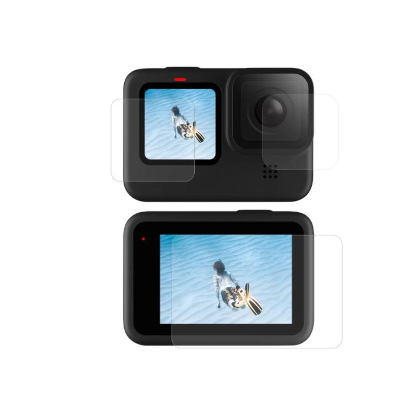 Apsauginės plėvelių rinkinys GoPro Hero 9, Hero 10, Hero 11 ir Hero 12 apima priekinę ekraną, galinę ekraną ir objektyvo apsaugą. Plėvelės lengvai montuojamos, išlaiko jutiklinio ekrano jautrumą ir užtikrina 99% šviesos pralaidumą, garantuojantį aiškią vaizdo kokybę.