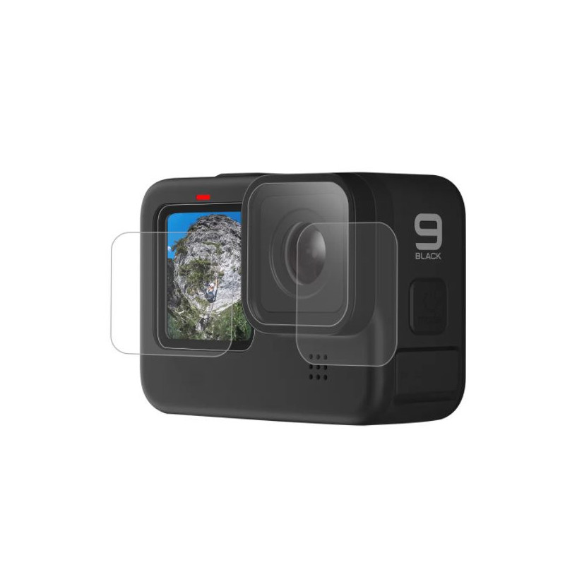 Apsauginės plėvelės rinkinys GoPro Hero 9, Hero 10, Hero 11 ir Hero 12 apima priekinio ekrano, galinio ekrano ir objektyvo apsaugą. Plėvelės yra sukurtos lengvam montavimui ir išlaiko jutiklinio jautrumo funkciją, užtikrindamos 99% pralaidumą aiškiai vaizdo kokybei.