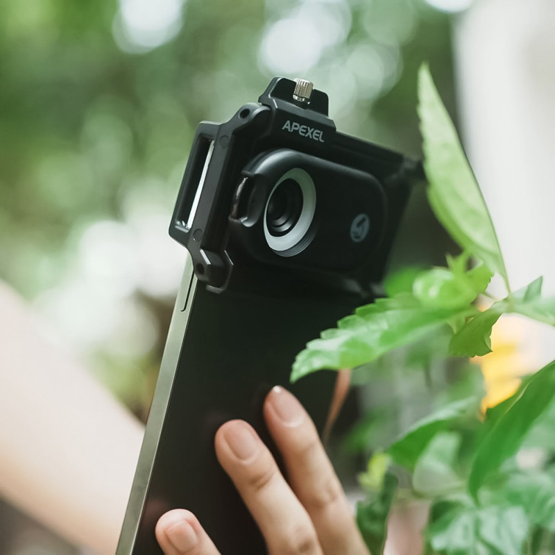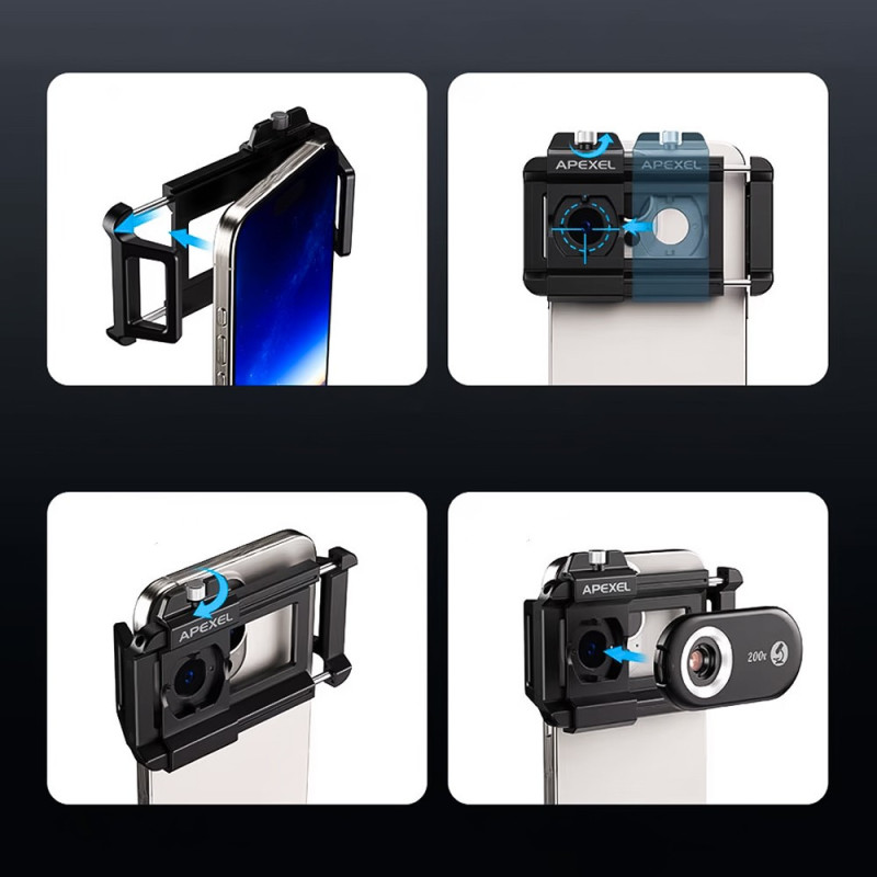 Apexel APL-MS200 yra 200x didinimo mikroskopas išmaniesiems telefonams su integruotu CPL filtru ir LED apšvietimu. Jame yra 100mAh įkraunama baterija, USB-C krovimas ir universali telefono laikiklis, suderinamas su dauguma išmaniųjų telefonų.