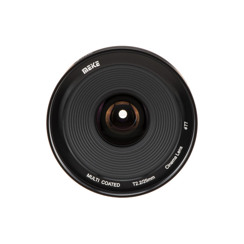 Meike MK 25mm T2.2 yra rankinio fokusavimo kino objektyvas, sukurtas Sony E mount kameroms. Jis turi mažo dispersijos stiklo, minimalų fokusavimo atstumą 24,9 cm ir tvirtą visiškai metalinį korpusą.