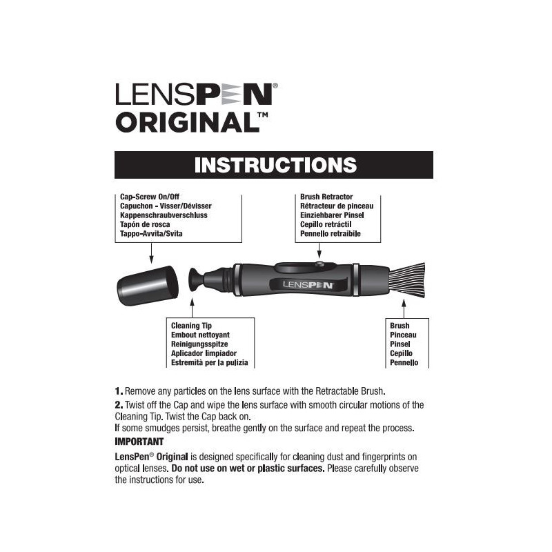 Originalus LensPen yra geriausias fotografavimo įrankis. Puikiai tinka fotoaparatų objektyvams, žiūronų lęšiams, mažos diafragmos taškams ir teleskopams, okuliarams ir kitiems optiniams objektams valyti.