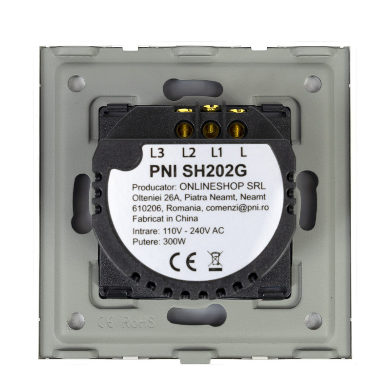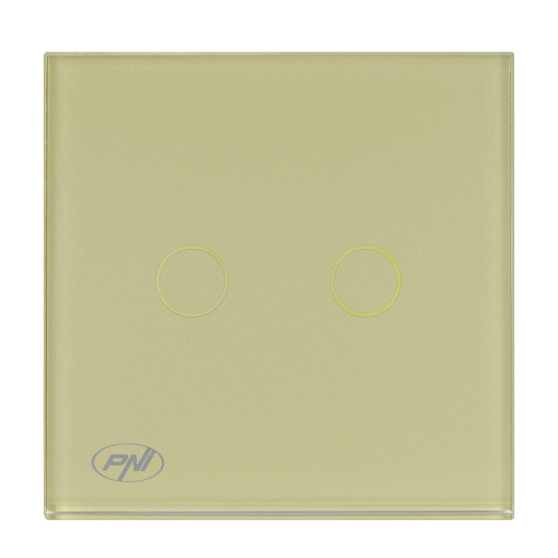 Dvigubas jutiklinis jungiklis PNI SH202G, pagamintas iš stiklo, aukso spalvos su LED indikatoriumi, aukso spalvos