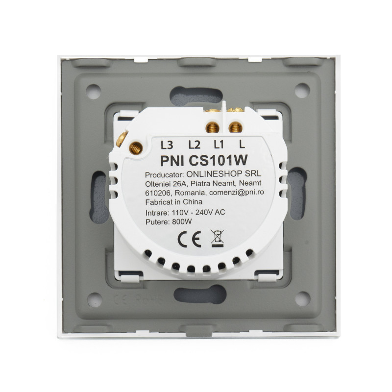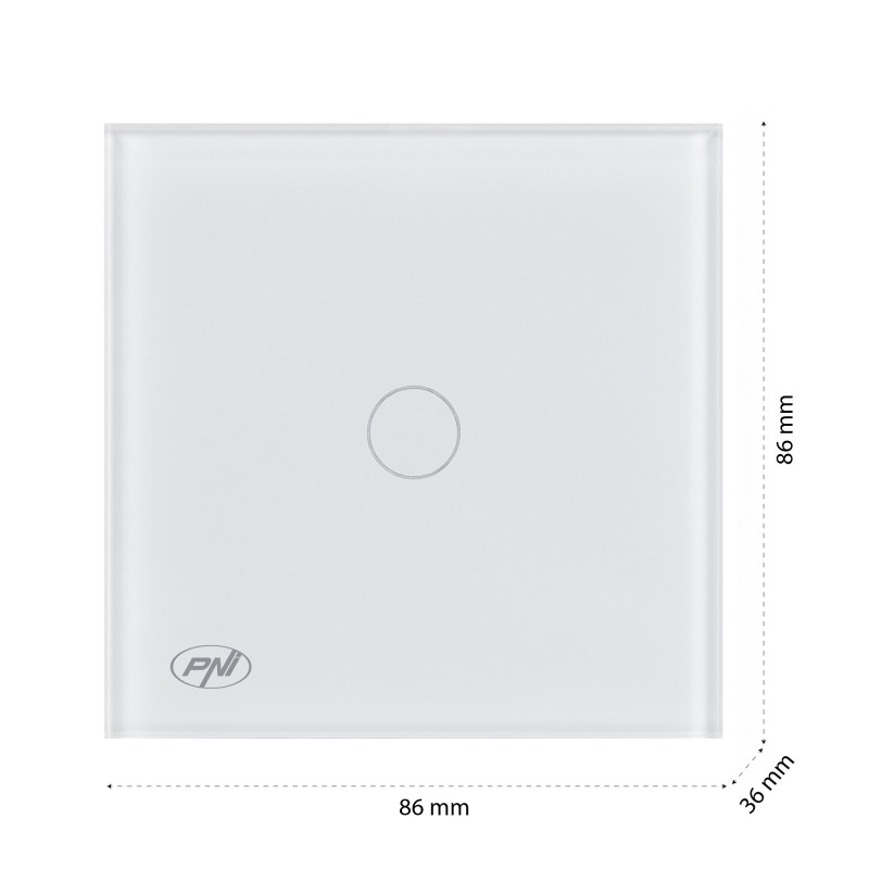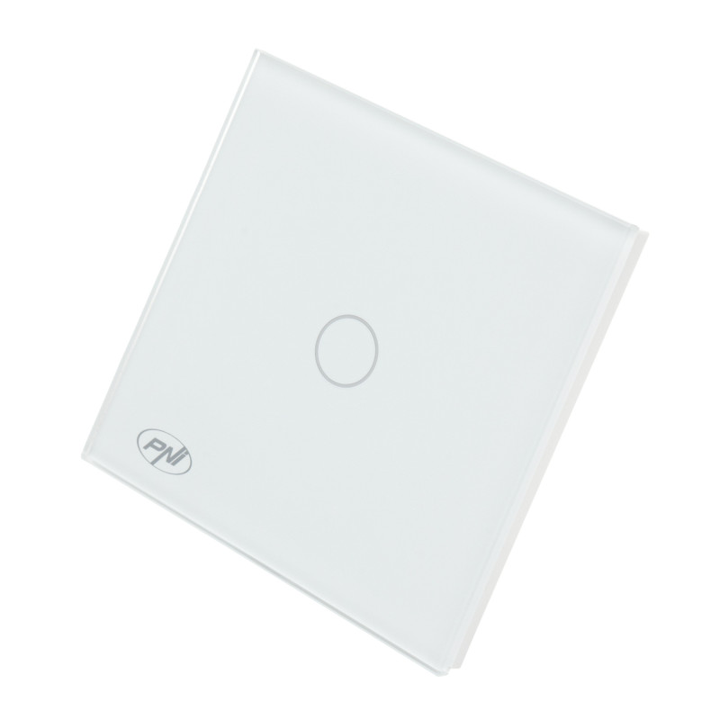 Paprastas kopėčių jungiklis ir kryžminis jungiklis su jutikliniu signalu PNI CS101W, pagamintas iš stiklo, baltas su LED indikatoriumi, 800 W