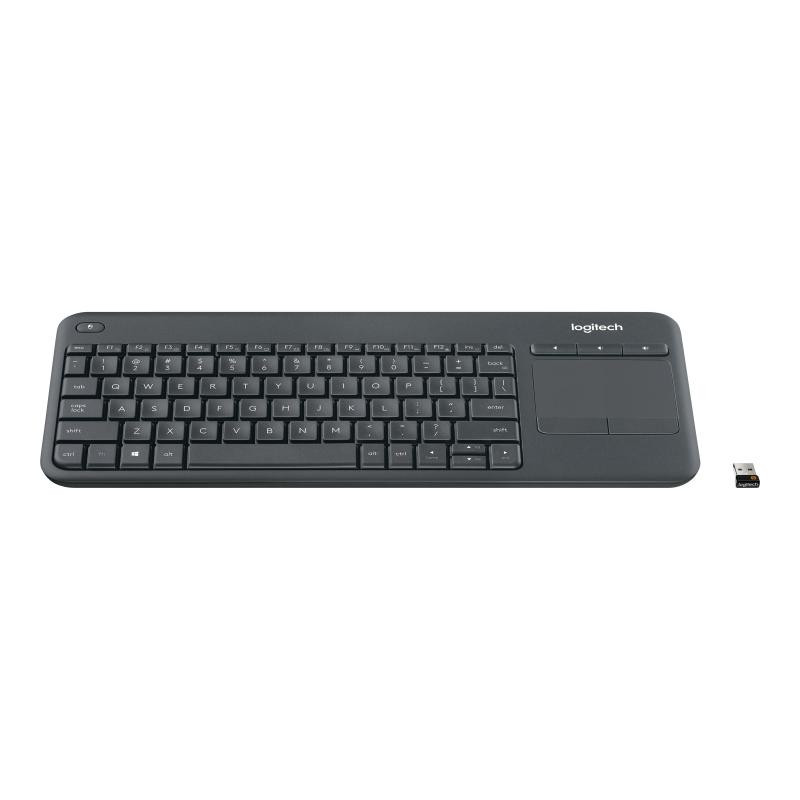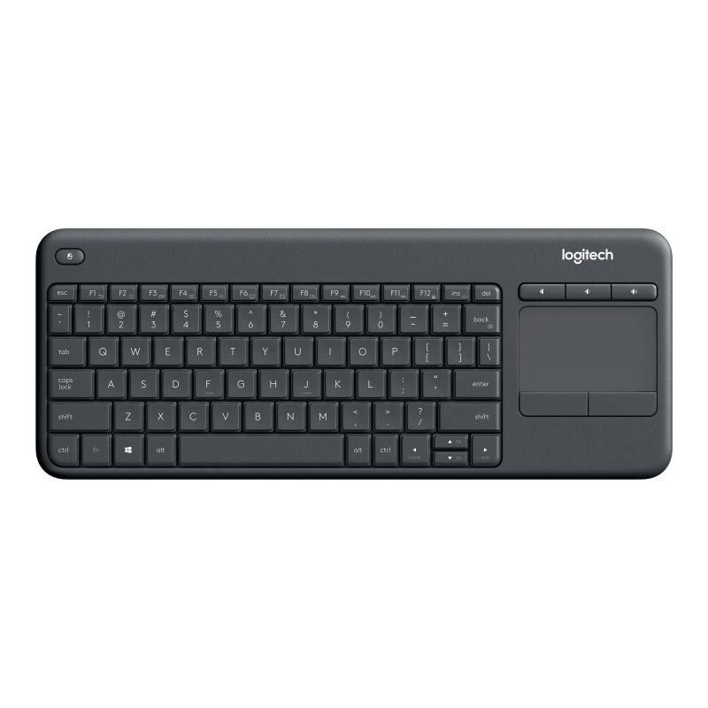 Logitech belaidė lietimui jautri klaviatūra K400 Plus yra kompaktiška, belaidė klaviatūra su integruotu lietimui jautriu paviršiumi, skirta patogiam PC prijungtų televizorių valdymui. Ji turi multimedijos valdymo funkcijas, baterijos veikimo laiką iki 18 mėnesių ir yra suderinama su Windows, Android ir ChromeOS.