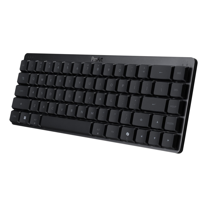 „ProArt Keyboard KD300“ yra 26,8 mm plonumo, 65 % žemo profilio klaviatūra su naršymo klavišais ir aukščiausios kokybės aliuminio viršutiniu dangteliu. Ši universali klaviatūra pasižymi trijų režimų ryšiu, leidžiančiu vienu metu palaikyti iki penkių įrenginių per 2,4 GHz belaidį ryšį, „Bluetooth®“ ir USB. Patogumui „ProArt Keyboard KD300“ turi kompiuterio / „Mac“ perjungimo jungiklį, magnetinio adapterio laikymo vietą ir novatorišką jutiklinį skydelį, skirtą intuityviam garsumo, medijos atkūrimo ir apšvietimo valdymui. Tuo tarpu žiniatinklio pagrindu sukurta ASUS Gear Link sąsaja leidžia tinkinti profilius, klavišų išdėstymus, makrokomandas ir apšvietimą, kad klaviatūra būtų pritaikyta jūsų kūrybiniams darbo eigai. ASUS RX Red žemo profilio optiniai jungikliai užtikrina sklandų, greitą ir tikslų klavišų paspaudimą, o du reguliuojami klaviatūros pakreipimo kampai užtikrina ergonomišką spausdinimo padėtį.