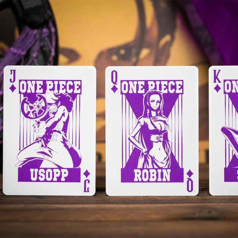 Nico Robin One Piece žaidimo kortos apima 52 pokerio kortas ir 2 jokers, sveriančios maždaug 102 gramus. Kiekviena korta turi naujai sukurtą meną, įkvėptą One Piece serijos, užtikrinant autentiškumą su apsauginiu ženklu.