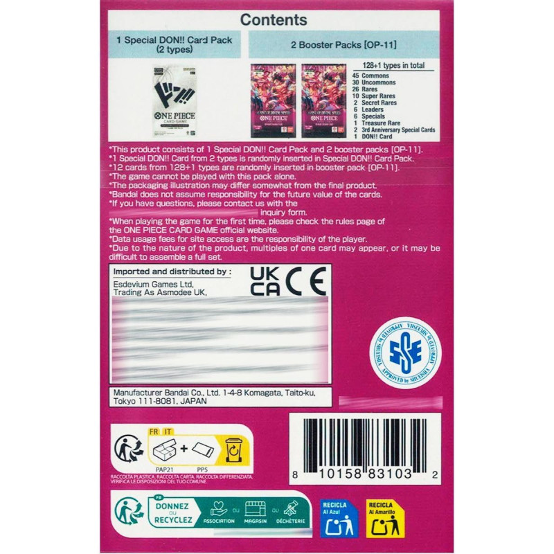 One Piece DP07 dvigubo paketo rinkinys, Vol. 7, apima 6 lyderio kortas su naujais efektais ir 2 booster paketus, pilnus jaudinančių naujų kortų. Šis rinkinys skirtas tiek kolekcionieriams, tiek žaidėjams, norintiems praturtinti savo kortų kolekcijas veikėjais iš Whole Cake Island siužeto.