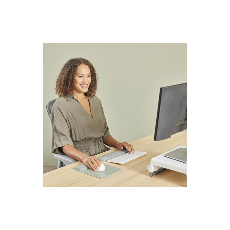 | Summary | Fellowes Keyboard Wrist Rest Breyta Compact Keyboard Wrist Support with Antibacterial Protection Ergonomic Wrist Support Sage. Product colour: Sage, Material: Silicone, Certification: EN ISO 9241-5. Width: 60 mm, Depth: 320 mm, Height: 17.5 mm. Quantity per pack: 1 pc(s) |