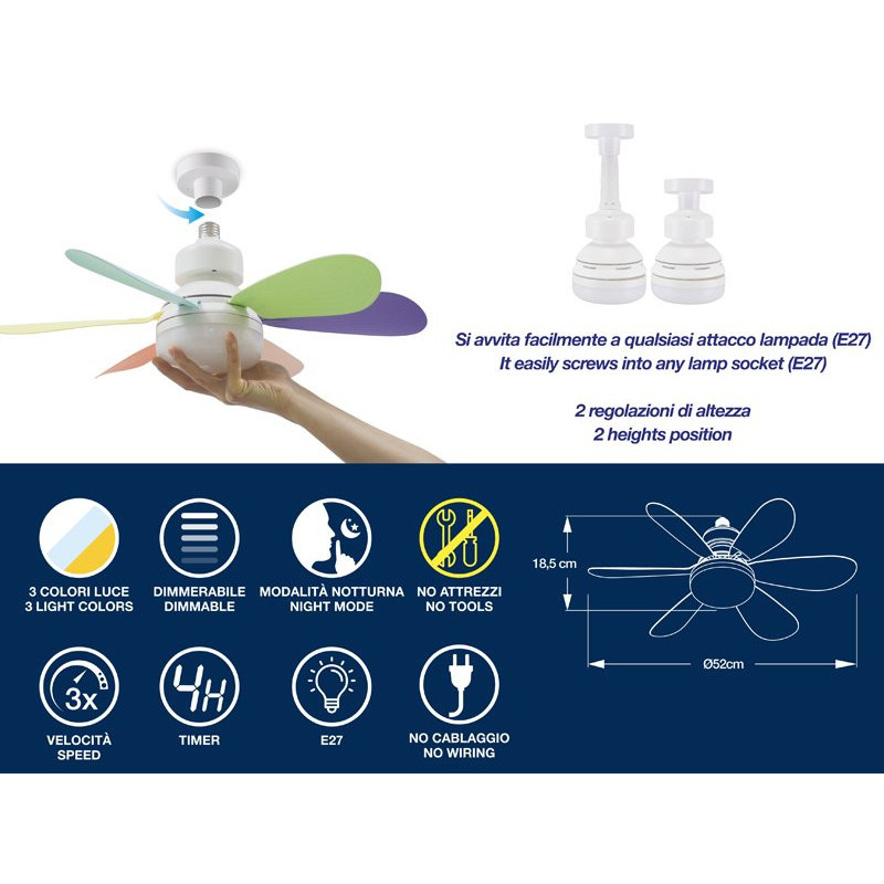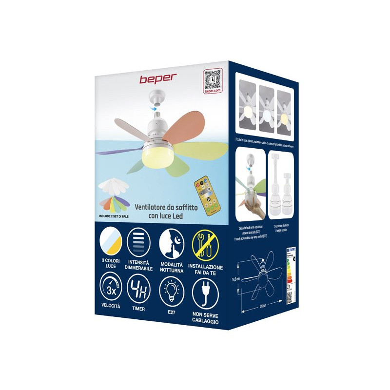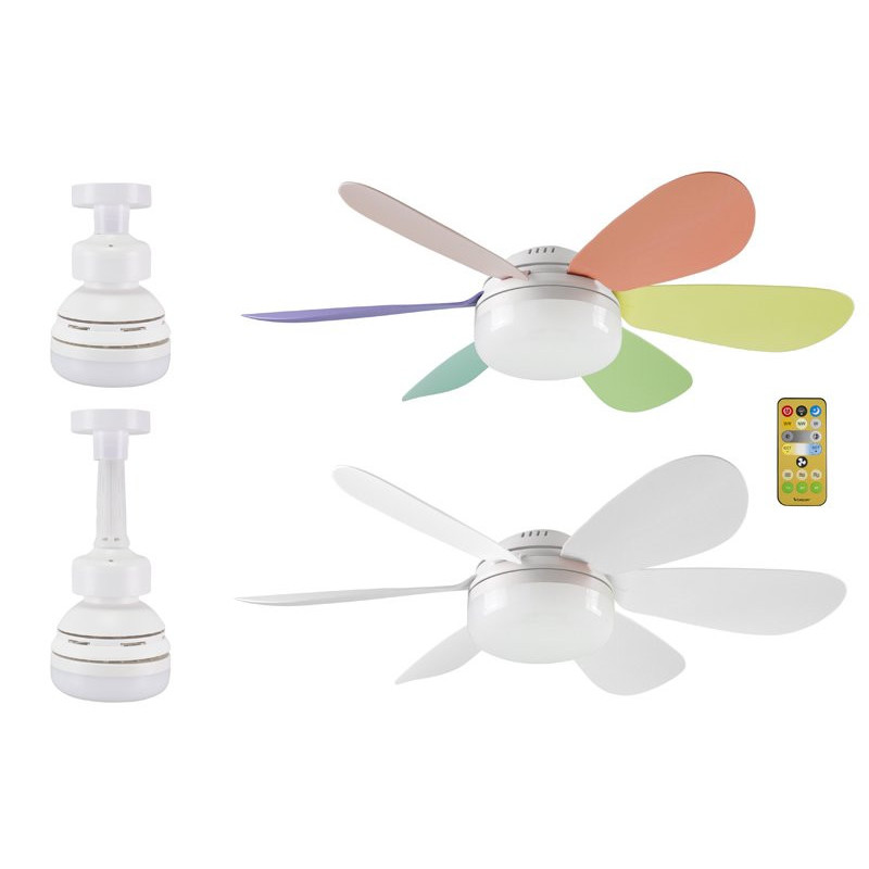Lubų ventiliatorius su dviem funkcijomis: vėdinimu ir apšvietimu.