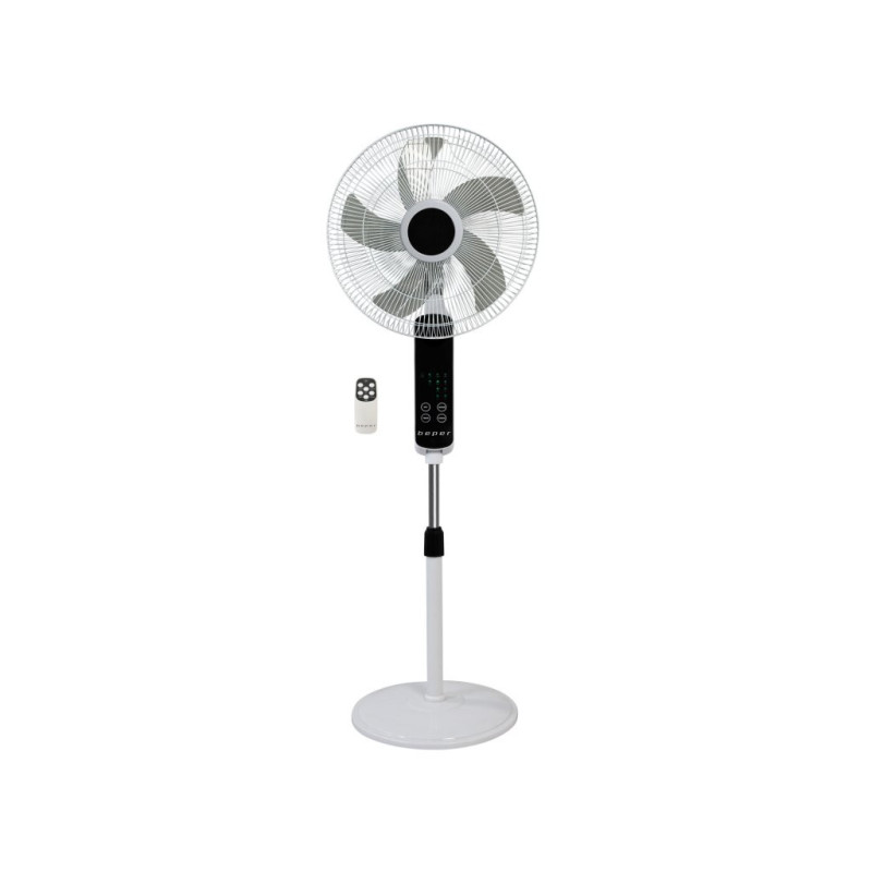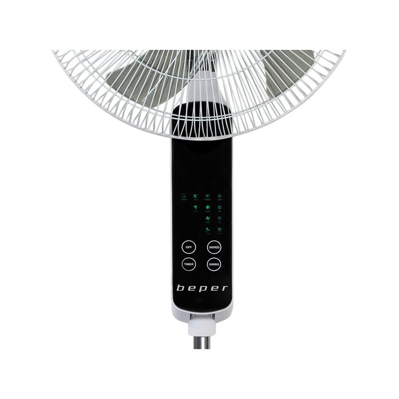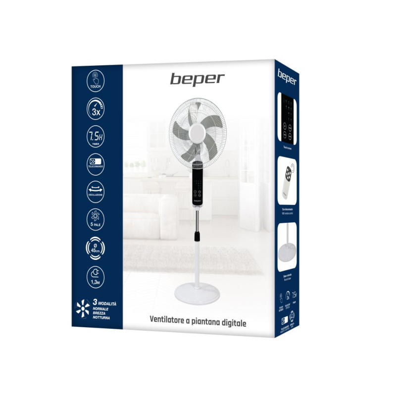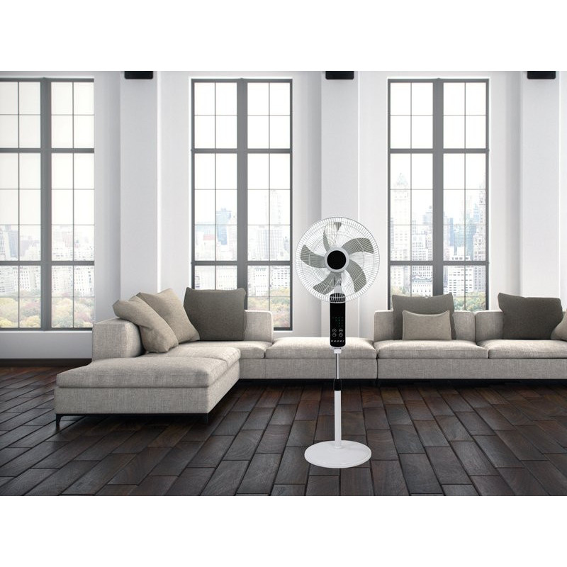 Pastatomas ventiliatorius su jutikliniu ekranu, turinčiu 5 ABS plastiko mentes, apsaugotas metalinėmis grotelėmis, Ø 45 cm. Jutiklinis skydelis leidžia pasirinkti 3 greičius: įprastą, vėjo arba naktinį veikimo režimą, pasirinkti osciliacijos funkciją ir laikmačio programą iki 7,5 valandų. Reguliuojamas aukštis iki 130 cm ir apvalus pagrindas užtikrina maksimalų stabilumą. Pridedamas praktiškas nuotolinio valdymo pultas.