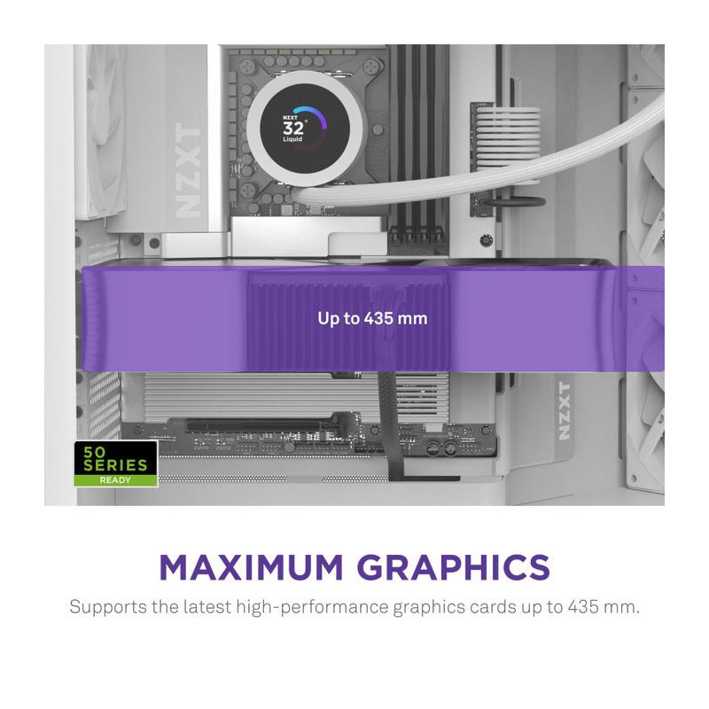 Palaiko iki 435 mm vaizdo plokštes, todėl yra daug vietos aukščiausios klasės vaizdo plokštėms.