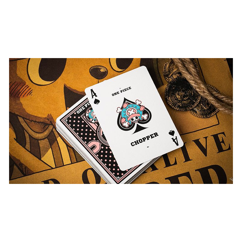 Chopper One Piece žaidimų kortų komplektą sudaro 52 pokerio kortos ir 2 dūzgos, su naujai sukurtu dizainu, įkvėptu One Piece serijos. Kiekvienas paketas sveria apie 102 gramus ir yra uždaromas, garantuojantis autentiškumą.