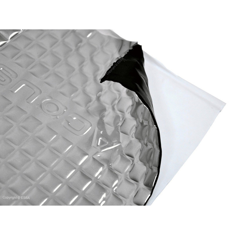 Niedroga, bardzo elastyczna, samoklejąca mata alu-butylowa do podstawowego wytłumiania drgań oraz rezonansów akustycznych elementów karoserii i tapicerki samochodowej, jachtów, maszyn, urządzeń przemysłowych, obudów sprzętu komputerowego, RTV i AGD. Bardzo dobra relacja ceny do jakości. Cena za opakowanie: 17 arkuszy o wymiarach 370x500 mm (3,145 m2), grubość maty 1,6 mm, grubość aluminiowej folii 0,06 mm (60 mikrometrów).
