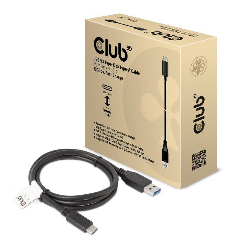 CAC-1523 „Club 3D“ USB 3.1 C tipo į A tipo USB laidas jungia nešiojamąjį kompiuterį, planšetinį kompiuterį ar telefoną su USB C tipo išvestimi prie mėgstamiausių esamų periferinių įrenginių, priedų ir įkroviklių, turinčių įprastą A tipo USB jungtį. Jis leidžia perduoti duomenis ir maitinimą vienu laidu ir abiem būdais.