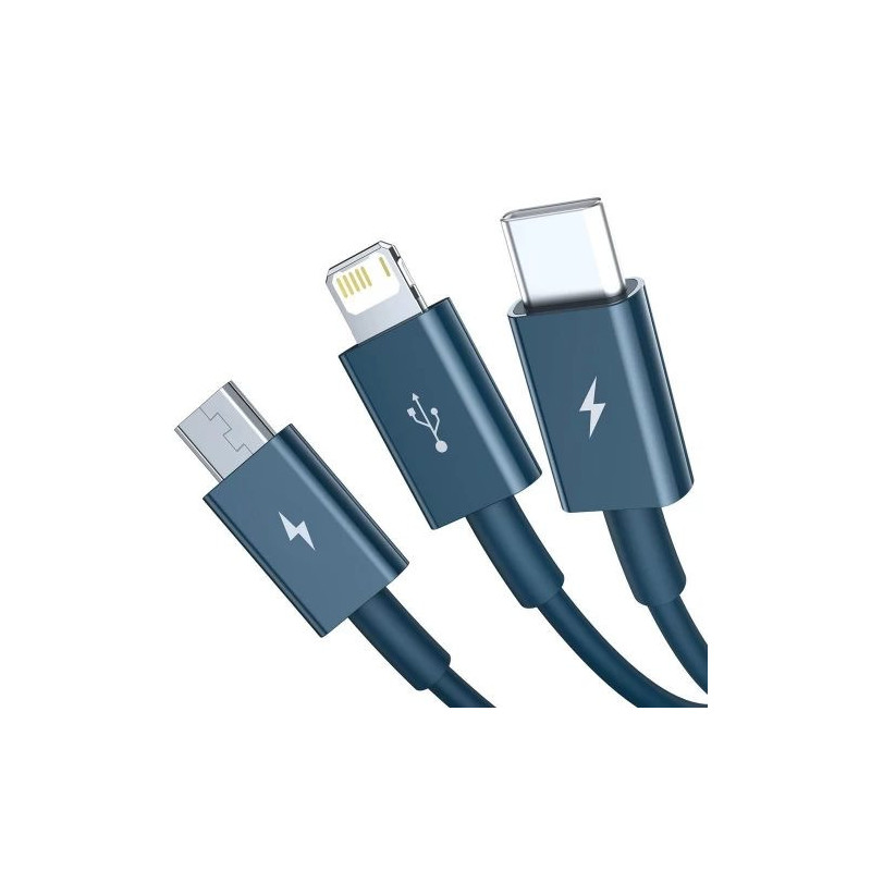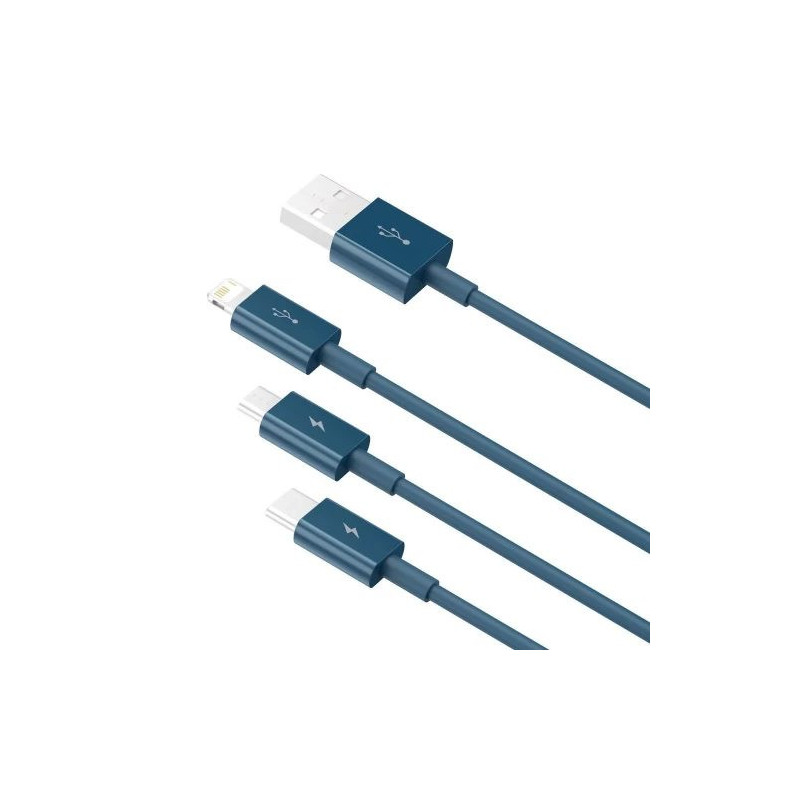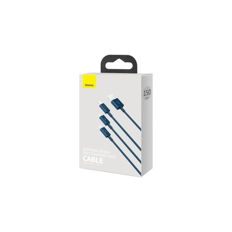 USB Kabelis Baseus "3in1 Superior" mėlynas 150cm (iki 3.5A)