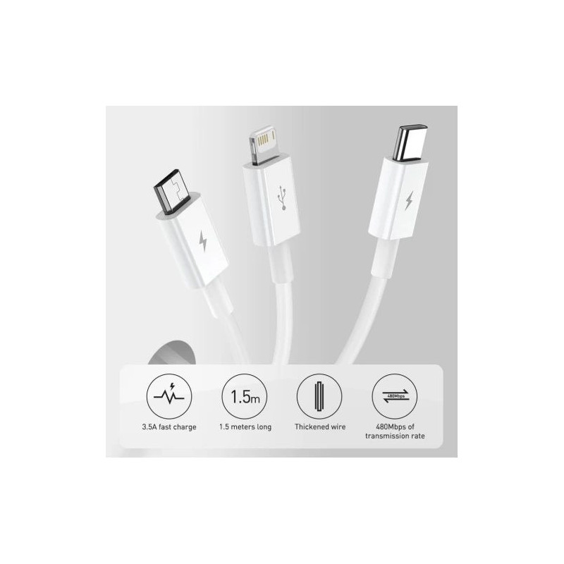 Baseus Superior 3in1 USB cable - Lightning / USB Type C / micro USB (charging 3.5 A / data transfer 480 Mbps) 1.5 m