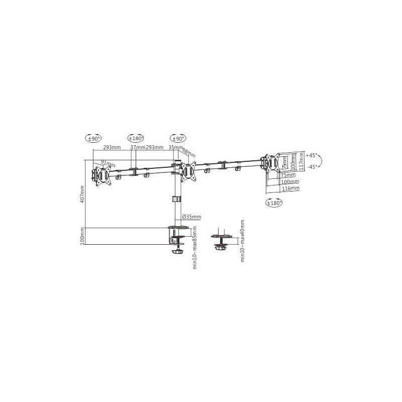 Gembird MA-D3-01 yra reguliuojamas stalo laikiklis, skirtas laikyti iki trijų ekranų. Tvirta plieno ir plastiko konstrukcija leidžia lengvai sukti, pasvirti ir reguliuoti ekranų kampą, užtikrinant patogų žiūrėjimą.