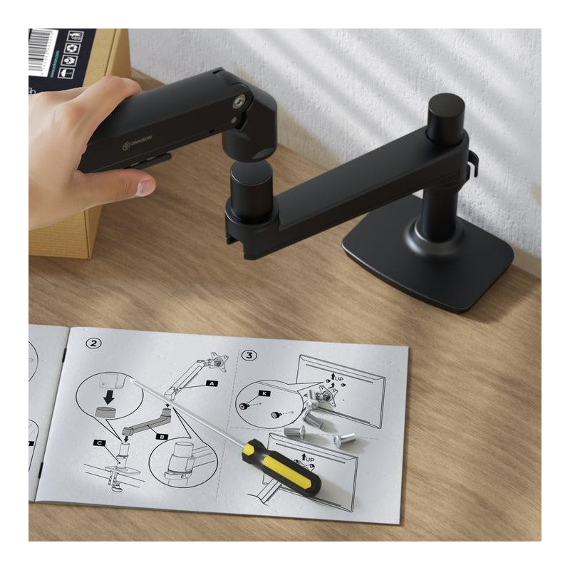 | Santrauka | ONKRON. Tvirtinimas: Spaustukas/Žiedas, Maksimali apkrova: 11 kg, Minimalus ekrano dydis: 43,2 cm (17"), Maksimalus ekrano dydis: 96,5 cm (38"), Minimalus VESA tvirtinimas: 75 x 75 mm, Maksimalus VESA tvirtinimas: 100 x 100 mm. Aukščio reguliavimas, Pasukimo kampo diapazonas: -90–90°, Pakreipimo kampo diapazonas: -25–90°. Produkto spalva: Juoda |