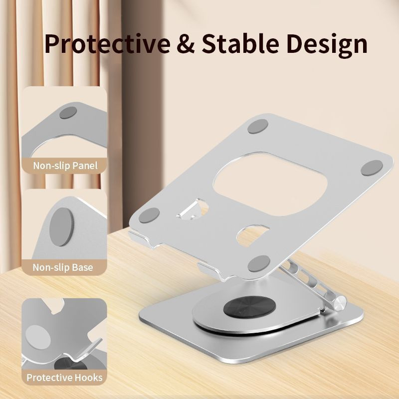 Laikikliai ir stovai „iLike STM5 Pro“ metalinis nešiojamojo kompiuterio / planšetinio kompiuterio laikiklis su reguliuojamu tobulu kampu ir 360 laipsnių sukimu, juodas, sidabrinis