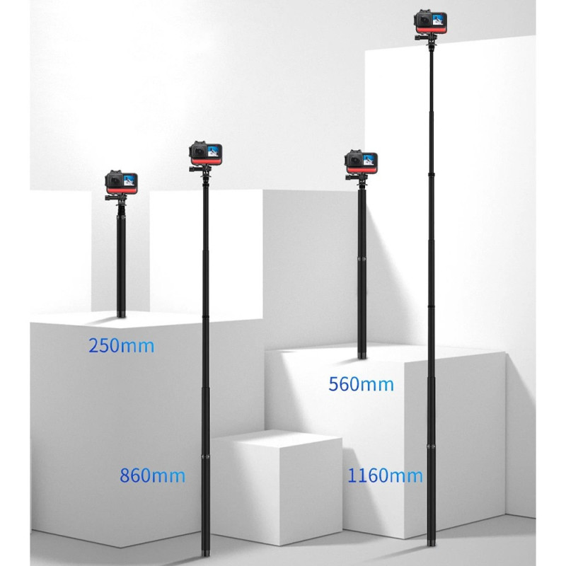 | Idealiai tinka greitų kadrų, grupinių nuotraukų ir ekstremalių sportų fiksavimui. Lengvas ir kompaktiškas dizainas leidžia lengvai nešioti, o reguliuojami ilgiai suteikia universalumo skirtingomis fotografavimo sąlygomis, nuo selfie iki panoramų. | |