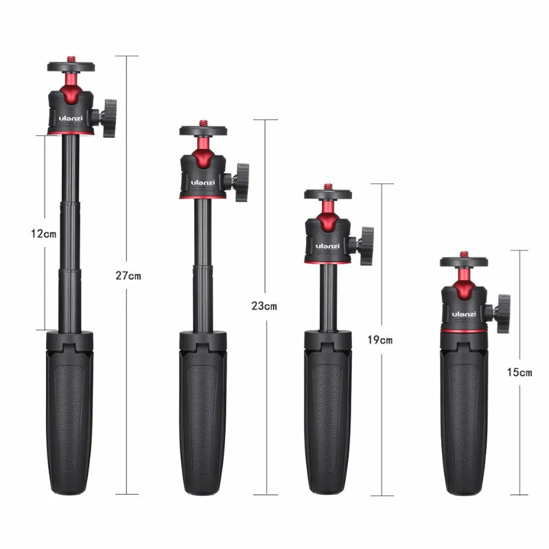 ULANZI MT-08 yra mini trikojis, kuris sujungia stalo trikojį ir selfie lazdelę. Jis turi kamuoliukų galvutę su 1/4" tvirtinimo srieginiu ir maksimalų 24 cm aukštį, kai visiškai ištemptas.