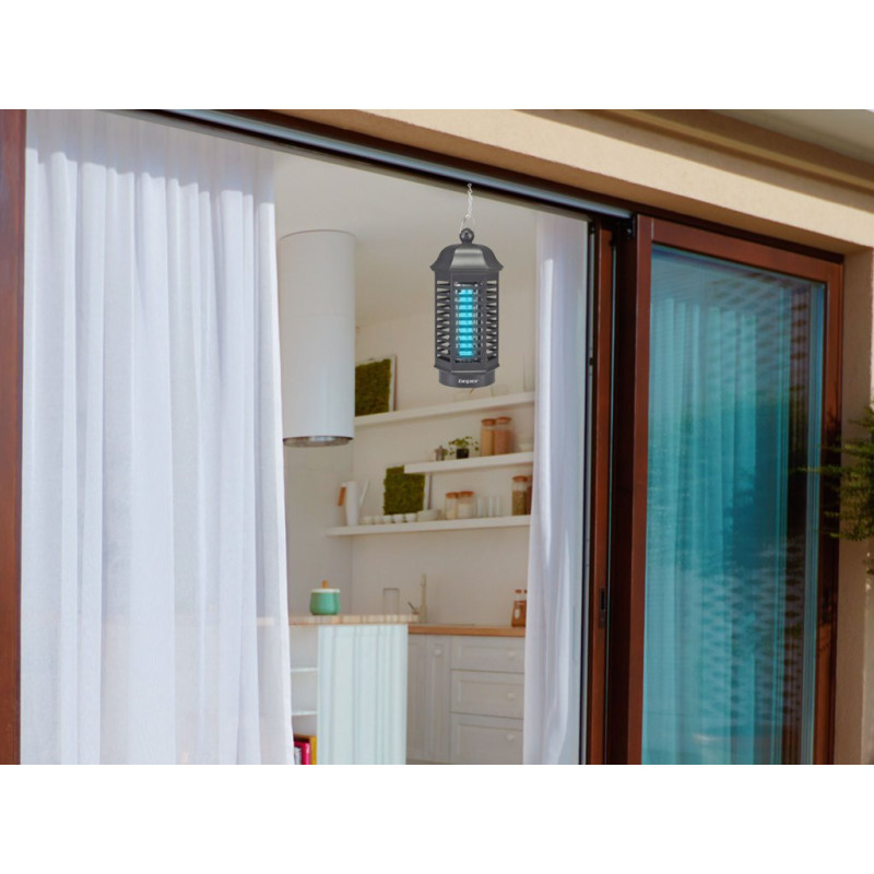 Elektrinė vabzdžių gaudyklė su rafinuotu dizainu, kurią galima pastatyti ant atraminio paviršiaus arba pakabinti dėl patogaus kablio. Aukštos kokybės ABS plastikas, atsparus aukštai temperatūrai, ir išorinis apsauginis tinklelis didesniam saugumui ir patvarumui. Didelio efektyvumo UV-A lempa, skirta uodams ir kitiems skraidantiems vabzdžiams naikinti nenaudojant cheminių medžiagų. Nuimamas vabzdžių dėklas, kad būtų lengva valyti.