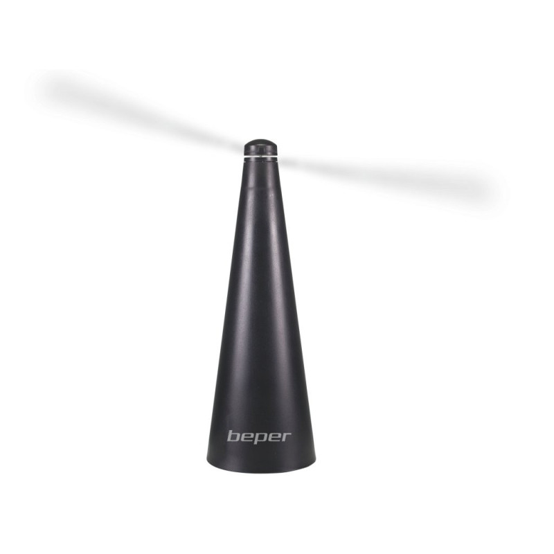 Šis mažas stalo ventiliatorius taps geriausiu jūsų vasaros sąjungininku, idealiu kompanionu vakarienėms ir iškyloms lauke. Minkšti, atspindintys, besisukantys atvartai atbaidys muses, kandes, vapsvas ir kitus didelius skraidančius vabzdžius: šį ventiliatorių galima pastatyti stalo centre arba pakabinti, nes apačioje yra praktiškas pakabinimo kabliukas. Pasiimkite jį visur, kur einate: tiesiog prijunkite jį prie nešiojamojo kompiuterio arba prie išorinės baterijos naudodami pridedamą USB laidą, arba įdėkite 2 šarmines AA baterijas į skyrių.