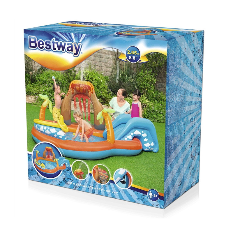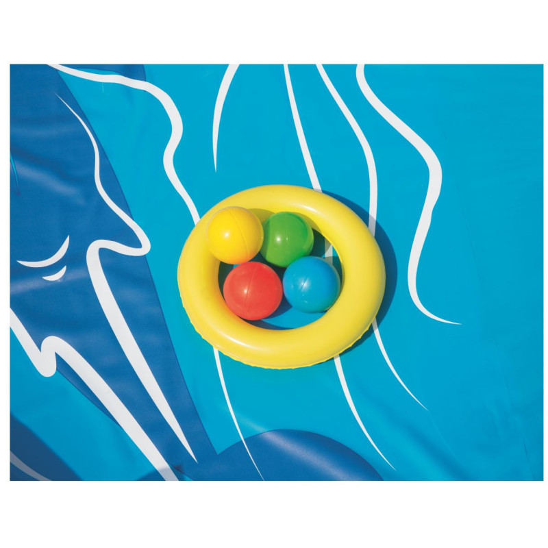 Pakuotėje: 1 baseinas, 1 čiuožykla, 1 vandens burbulas, 1 pripučiamas ratas, 4 žaidimų kamuoliai, taisymo lopas