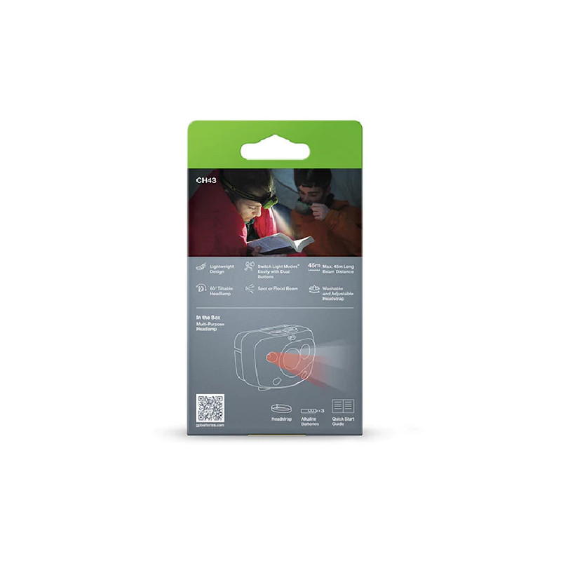 Sukurta taip, kad palengvintų kasdienį gyvenimą. Dėl 45 metrų spindulio atstumo ir iki 150 liumenų jis idealiai tinka visiems apšvietimo poreikiams. Apšvieskite savo kelią pasirinkdami iš 5 šviesos režimų, įskaitant raudoną LED naktinį matymą ir mirksinčias parinktis. Jame yra lengvai naudojami du mygtukai, kad būtų paprasta valdyti ir naršyti visas pagrindines apšvietimo funkcijas. Sukurta atlikti kiekvieną paskirtą užduotį dėl 36 valandų veikimo, IPX4 atsparumo vandeniui, 1 metro smūgiams atsparaus išorės ir mašinoje plaunamo bei reguliuojamo galvos dirželio. Sukurtas taip, kad būtų suderinamas tiek su vienkartinėmis, tiek su įkraunamomis (NiMH) baterijomis, šis DISCOVERY galvos žibintas veda į tvaresnę ateitį. GP DISCOVERY universalus galvos žibintas CH43 yra "viskas viename" apšvietimas, būtinas kiekvienai šeimai.