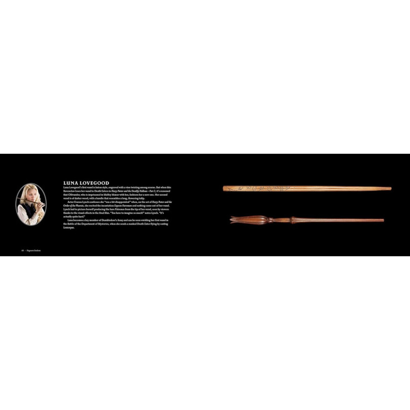 Knygoje pateikiamos išsamios aprašymų ir nuostabios nuotraukos apie lazdelės iš Harry Potter ir Fantastinių gyvūnų filmų. Joje rasite įžvalgų apie magiškus personažus, lazdelės statistiką ir užkulisių informaciją iš Warner Bros. archyvų, apimančių 196 puslapius.