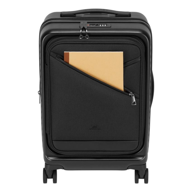 | Summary | Rivacase Clark. Luggage type: Trolley, Shell type: Hard shell, Product main colour: Black. Volume: 34 L, Size (imperial): 50.8 cm (20"), Expanded dimensions (W x D x H): 350 x 250 x 550 mm. Material: Aluminium, Polycarbonate (PC), Polyester |