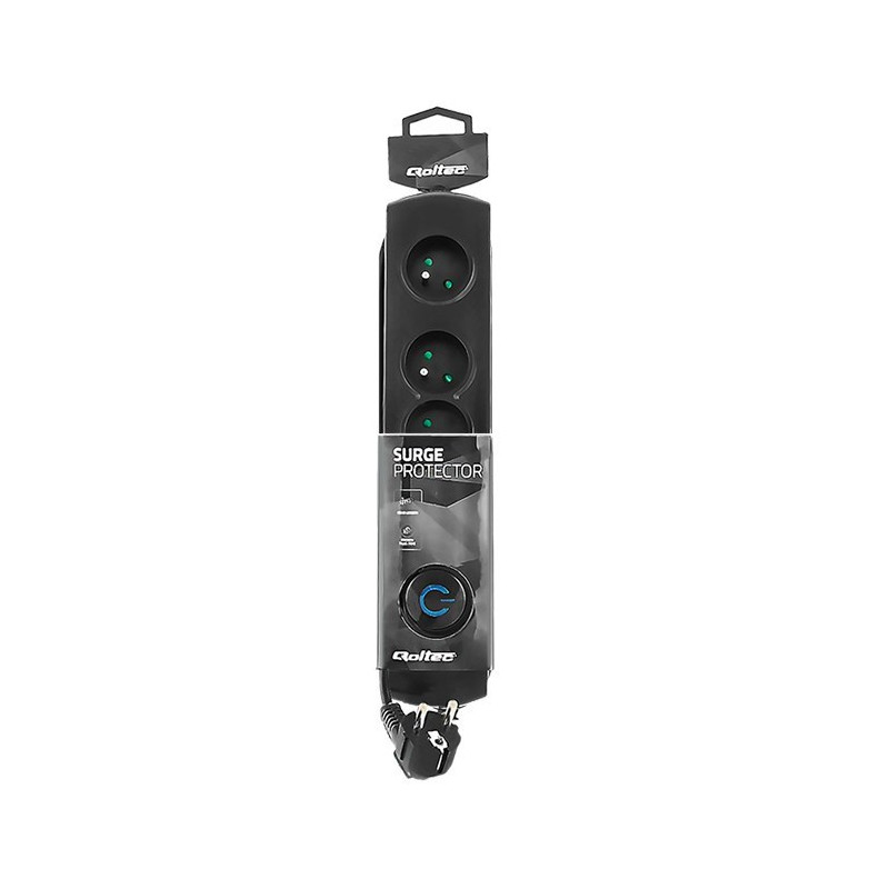 „Qoltec 50104“ viršįtampių apsauga 4 kintamosios srovės lizdai 230 V 1,5 m Juoda