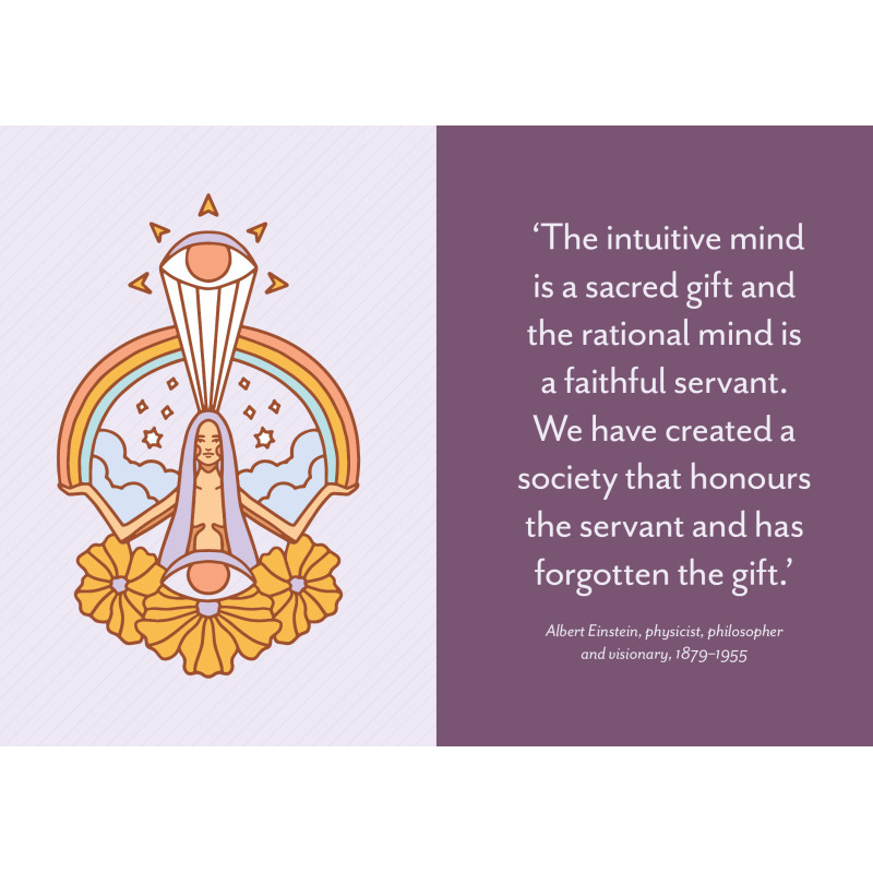 Ar kada jautėte kažką, ko negalėjote paaiškinti? Vidinį stimulą pasielgti kažkaip specifiškai, net jei tai prieštarautų Jūsų racionaliam protui? Autorė BelindaGrace pristato kortas, kurios suteiks Jums daugiau pasitikėjimo savimi atpažinti, interpretuoti ir pasitikėti savo natūralia išmintimi tam, kad praturtintumėte savo gyvenimą ir patirtis. Kortos "Divine Intuition" pilnos praktinių patarimų ir įžvalgų, kurios padės Jums atpažinti ženklus ir atskleisti savo intuicijos potencialą.