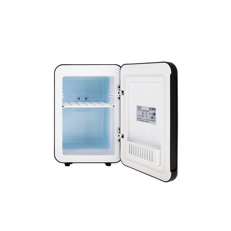 Mini šaldytuvas Adler AD 8084 turi 4 litrų talpą ir veikia esant aušinimo temperatūrai, kuri yra 18-22 žemiau aplinkos temperatūros. Jis pasižymi mechaniniu valdymu, dviem lentynomis ir laisvai pastatomu dizainu, kurio matmenys yra 183 mm pločio, 270 mm aukščio ir 241 mm gylio.