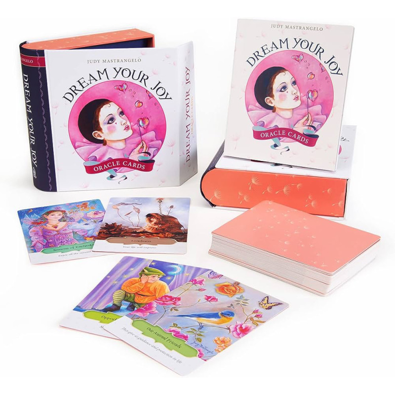 Svajokite apie džiaugsmą, kurio visada norėjote. Naudodami šią 59 kortų kaladę, išmokite autoriaus "minčių piešimo" technikos, kad mintyse sukurtumėte idealų vaizdinį, kaip norėtumėte, kad viskas būtų realybėje. Nors visą gyvenimą siekiame nuveikti nuostabių dalykų ir tapti nuostabiu žmogumi, kartais šios svajonės lieka neįgyvendintos, o tai turi įtakos mūsų sveikatai - fizinei, psichinei ir dvasinei. Rinkinyje esančioje knygelėje pateikti kortų aprašymai ir interaktyvūs užsiėmimai, įskaitant sapnų meditacijas, afirmacijas, šokio ir pantomimos pratimai, piešimo terapijos eksperimentai ir spalvų sąryšių paaiškinimai. Visa tai suteiks įkvėpimo, padėsiančio ieškoti atsakymų savo sieloje. Tegul spalvingi, nuotaikingi, "vidinės vaikystės" vaizdai šiose kortose įgalina jus pajusti didžiulį džiaugsmą ir meilę visatoje, net ir per tamsą, kuri gali kartais mus supti. Niekada nevėlu tęsti savo idealios svajonės kūrimo!
