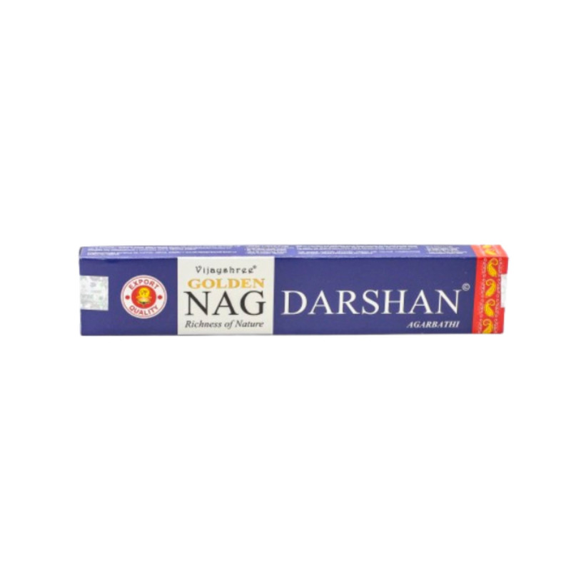 Golden Nag - Darshan Smilkalai Vijayshree apima apie 15 rankomis suktų smilkalų lazdelių, pagamintų iš natūralių ingredientų. Kiekviena lazdelė dega apie 30 minučių ir yra supakuota į perdirbamą popierių.