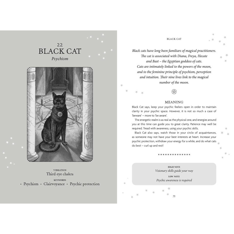 Lavinkite paslėptus intuityvius įgūdžius ir atraskite vikanų išmintį su šia gražiai iliustruota burtų kalade ir vadovu. Kortos su pagrindiniais vikanų simboliais ir archetipais padės jums prisijungti prie gilaus vidinio pažinimo ir rasti atsakymus, kurių ieškote. Kiekviena korta simbolizuoja tam tikrą energijos kokybę ir turi savo ypatingą reikšmę skaitymui, o "aukštosios ir žemosios natos" suteikia įžvalgų apie galimybes ir keblumus, su kuriais galite susidurti dabartiniame savo kelyje. Raganų orakulas, kuriame pateikiama įdomi informacija apie Wicca istoriją ir Wicca metų šventes, taip pat pasirinktos kortų išklotinės, tinkančios visų tipų klausimams, padės jums išlavinti intuityvius įgūdžius ir įpinti magijos į savo gyvenimą, kai pradėsite ieškoti patarimų.