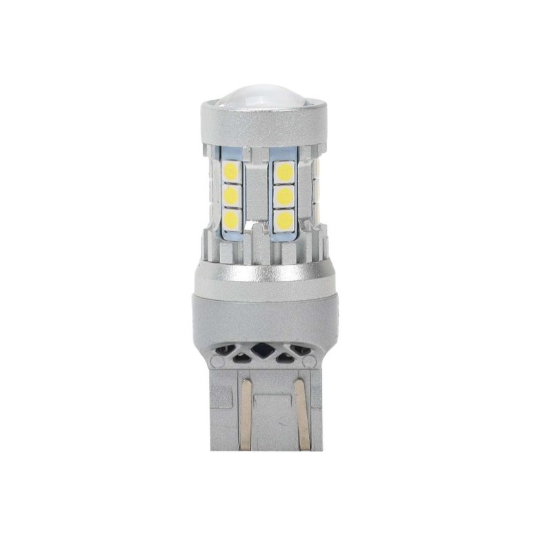 - Darbinė įtampa: 9 V - 16 V Tipas: W21/5W / 7443- Rankena: T20- Diodų tipas: SMD 3030- Diodų skaičius: 20/lemputė- Poliarizacija: Nr. 1- Maitinimo sistema: DC2- Šviesios spalvos: 6000K – šaltai balta – Darbinė temperatūra: Nuo -40 °C iki +50 °C - Aliuminio korpusas užtikrina efektyvų šilumos išsklaidymą ir stabilų veikimą. 1. Lemputė veikia nepriklausomai nuo įdėjimo krypties (nėra poliškumo). 2. Pastovus ryškumas ir šviesos diodų apsauga nuo įtampos šuolių. Taikymas: Gabaritiniai žibintai, STOP žibintai, Dienos žibintai, DRL3 3. Naudoti tik šiam tikslui pritaikytose transporto priemonėse ir įrenginiuose. Privalumai: - du apšvietimo lygiai (pozicinis / sustabdymas) - nėra poliškumo - greitas ir paprastas montavimas - stabilus ryškumas dėl nuolatinės srovės maitinimo - momentinis reagavimas įjungus - mažesnės energijos sąnaudos - didelis šviesos efektyvumas - tarnavimo laikas iki 50 000 valandų Į komplektą įeina: - 2 LED lemputės W21/5W / 7443 - Kvitas arba PVM sąskaita faktūra Lemputės matmenys Neatitinka ECEC reikalavimų. Tik važiavimui bekele. Už naudojimą viešaisiais keliais gali būti skiriama bauda, konfiskuojamas transporto priemonės registracijos liudijimas arba, susidūrimo atveju, prarandamas draudimas.